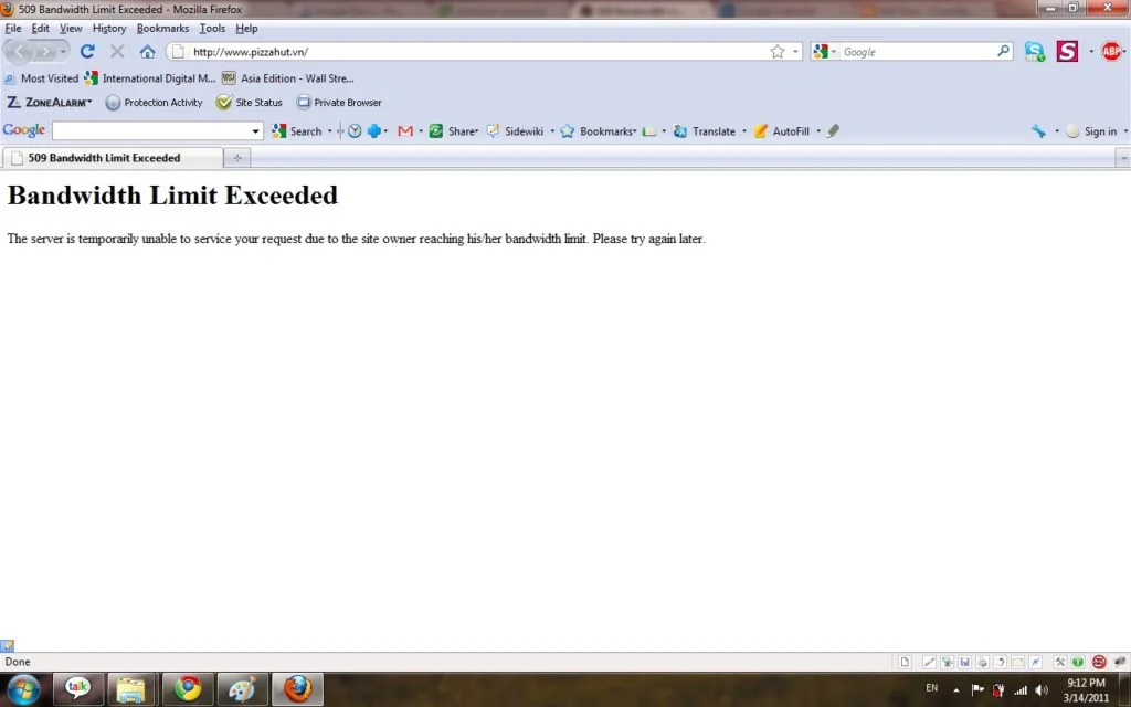 In simple terms, traffic from Google represents golden opportunity for Pizza restaurant to reach out to existing customers, prospective customers! Well that's about it for me. Cheerio, Chandler Updated 14 Mar 2011: Since the afternoon, PizzaHut website has been down until now. The error is bandwidth exceeded. I am not sure if anyone is taking care of this issue but website being down is a big issue for a B2C website. If i want to order Pizza now, which number should i call?