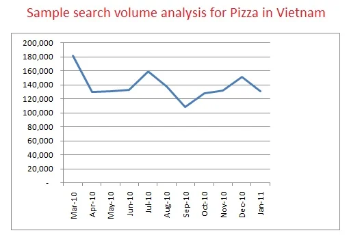 Well, besides branded search terms i.e. pizzahut, pizza inn Vietnamese do search for other common terms related to pizza as well. Their search habit ranges from searching for promotion, how to make pizza, how much it costs to have pizza etc...