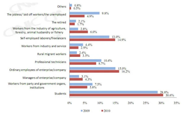 If you want to download the full report, here it is : 27th statistical report on China Online/Internet Development 2010.