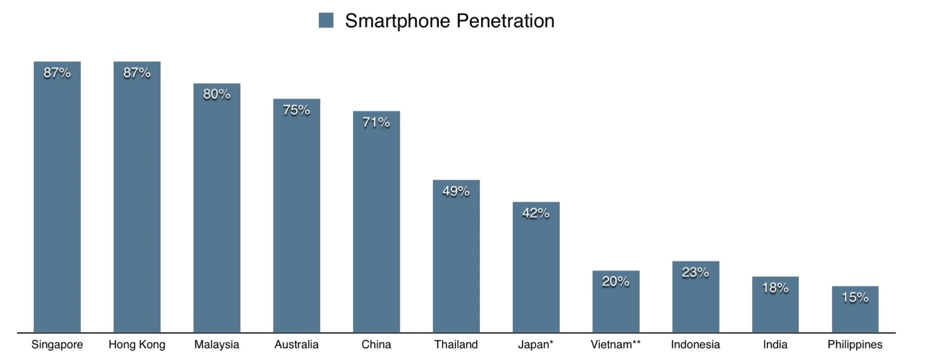 2. Smartphone penetration ranges from 15% to 87% across APAC.