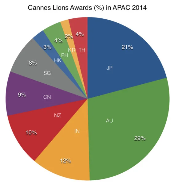While Japan might not win as many awards as Australia, it certainly won more Grand Prixes and Gold Lions. Japan receives the same number of points as India, New Zealand and China combined.