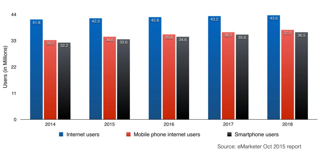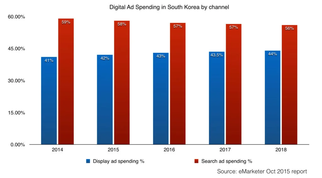 4. Majority (54.4%) of South Korea digital ad spending was on mobile devices in 2015