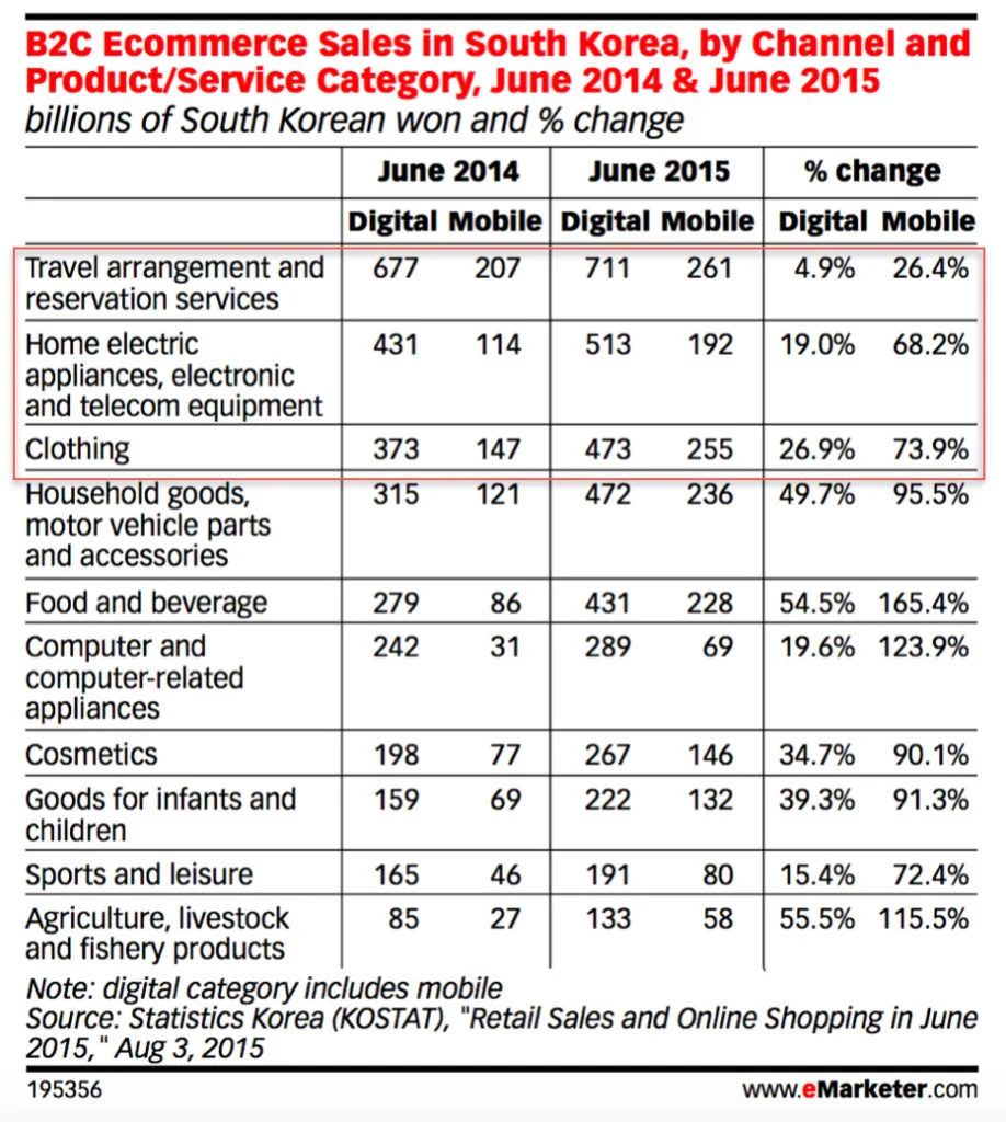 5. Travel, home electric appliances and clothing are the top 3 e-commerce categories in terms of sales in South Korea and digital buyers are increasingly purchasing them on Mobile devices