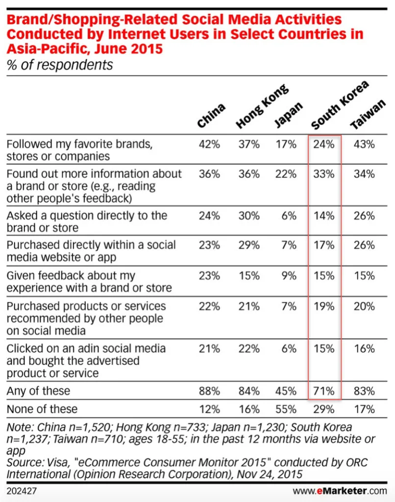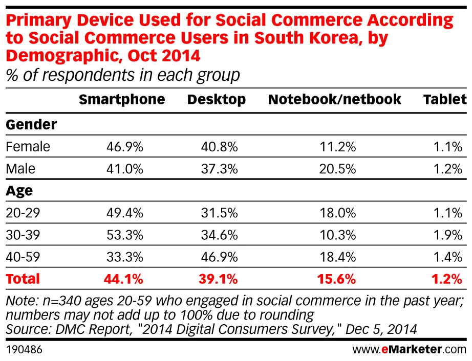 7. Similar to other markets like China, Hong Kong and Taiwan, Social commerce is getting big in South Korea with 2/3 of internet users participating in it. Also the device of choice is smartphone