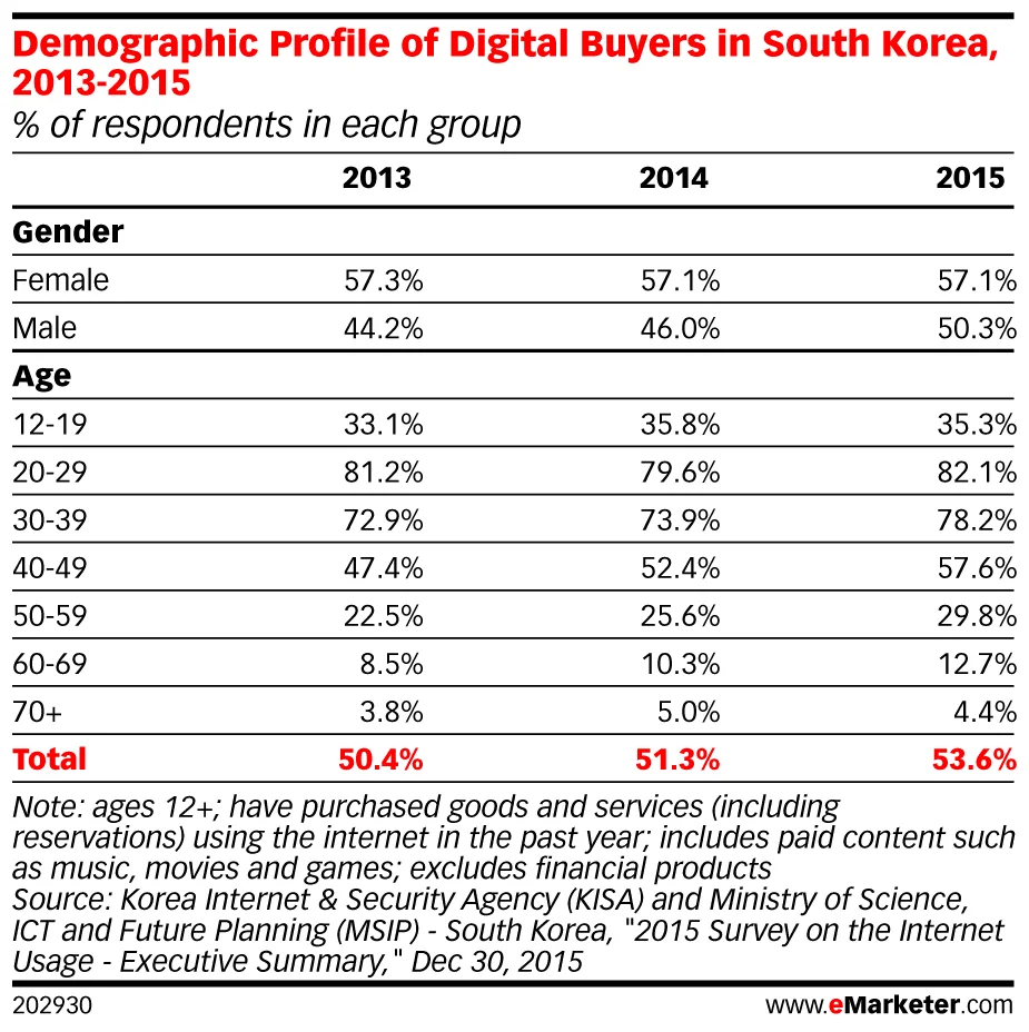 2. There are 25M digital buyers in South Korea, 58.3% of the total population (South Korea penetration is higher than China, but lower than the US, UK, Germany and JP)