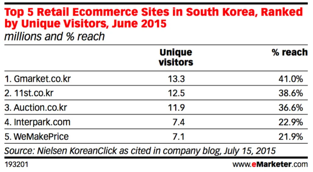 8. Gmarket, 11st.co.kr, Auction.co.kr are the top 3 e-commerce sites in South Korea in terms of unique visitors