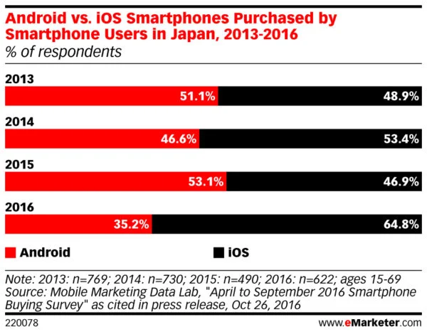 With people spending more time on Mobile devices and the fact is that iOS has bigger share 65% in Japan, Yahoo! JP has a strong search engine market share on mobile devices.