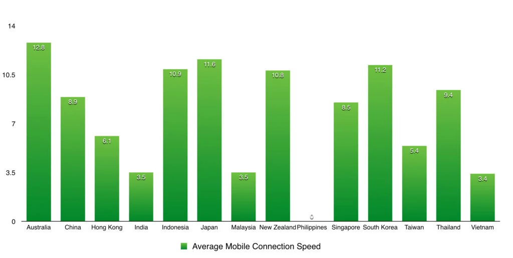 4. Surprisingly Australia is leading APAC in Q3’16 when it comes to average mobile connection speed, followed by Japan and South Korea