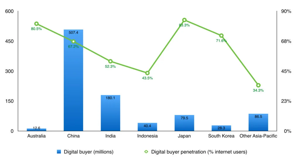 6. China is leading APAC in terms of the number of Digital Buyers although Japan, Australia and South Korea are leading regarding digital buyer penetration