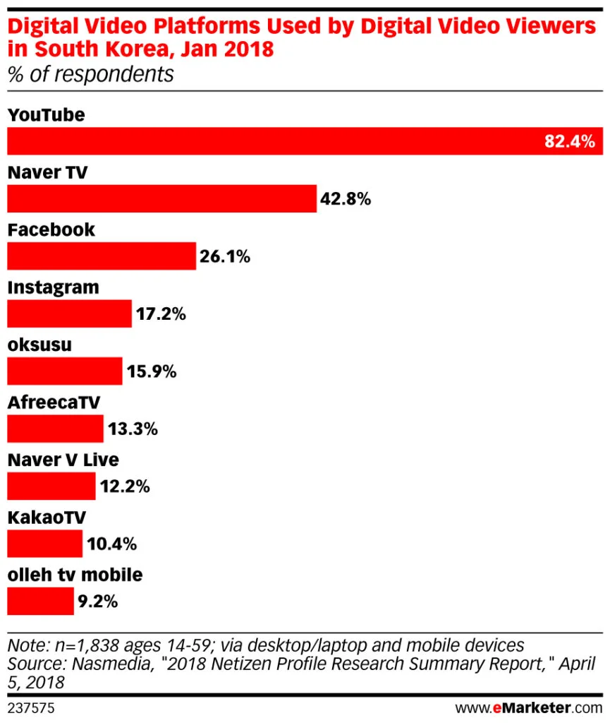 Naver TV ranks second in terms of Digital Video Platform used by viewers in South Korea
