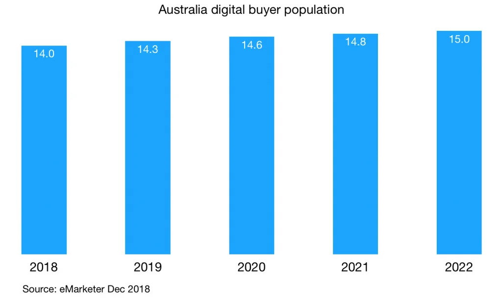 There are more than 14 million digital buyers in Australia (80%+ of internet population). And it's expected to grow modestly year on year
