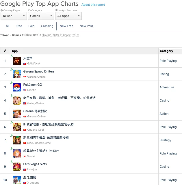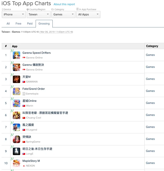 7. The majority of the top 10 grossing games in Taiwan are from local publishers, Singapore or China