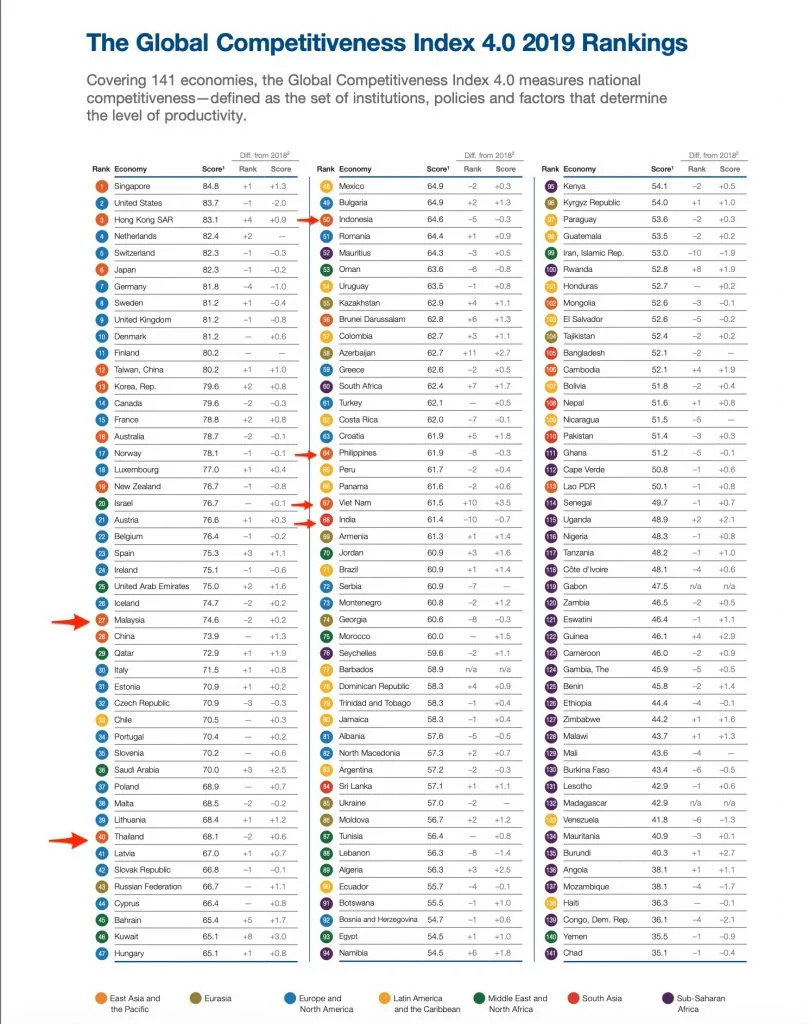 Vietnam ranking is lower than Malaysia (#27), Thailand (#40), Indonesia (#50), Philippines (#64), higher than India (#68). Vietnam ranking has improved the most (by 10) in the world between 2018 - 2019.