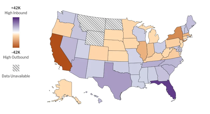 US migration trend between states