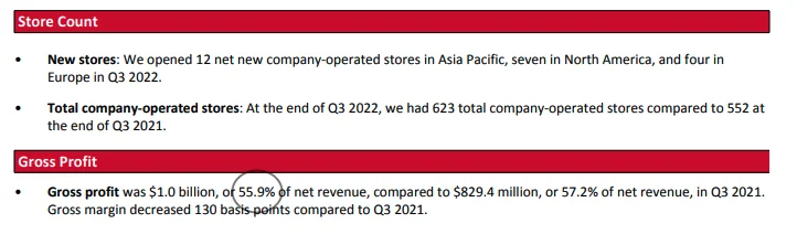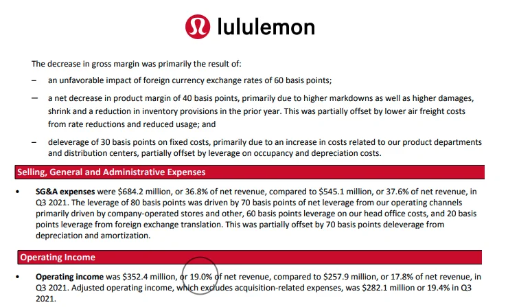 - This is Lululemon's Q3 2022 financial report. Same thing, i highlighted the key numbers mentioned in Dmitri’s article in the below screenshots. He is right, Bing search made up numbers.