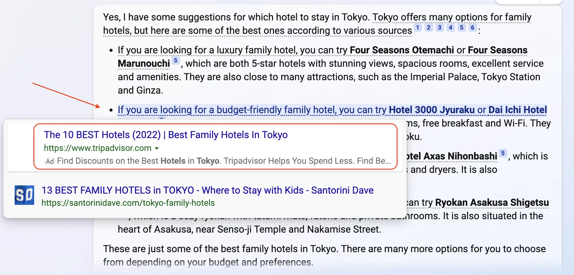 For example, when I try to research “travel to Tokyo as a family”, this is what I found