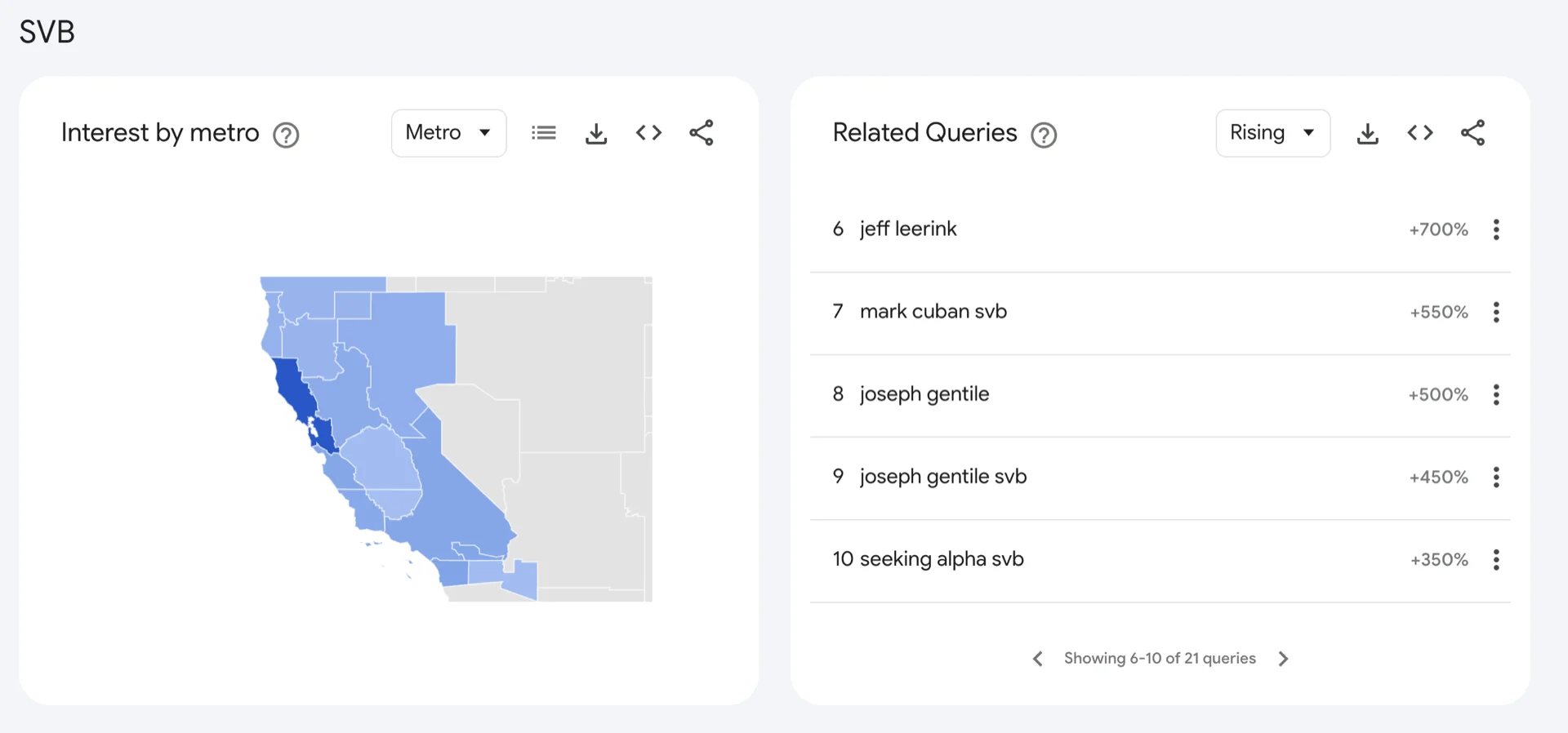 Continue with the list of top queries related to SVB over the past 24 hours, Californians are searching about "Jeff Leerink" and "Joseph Gentile"