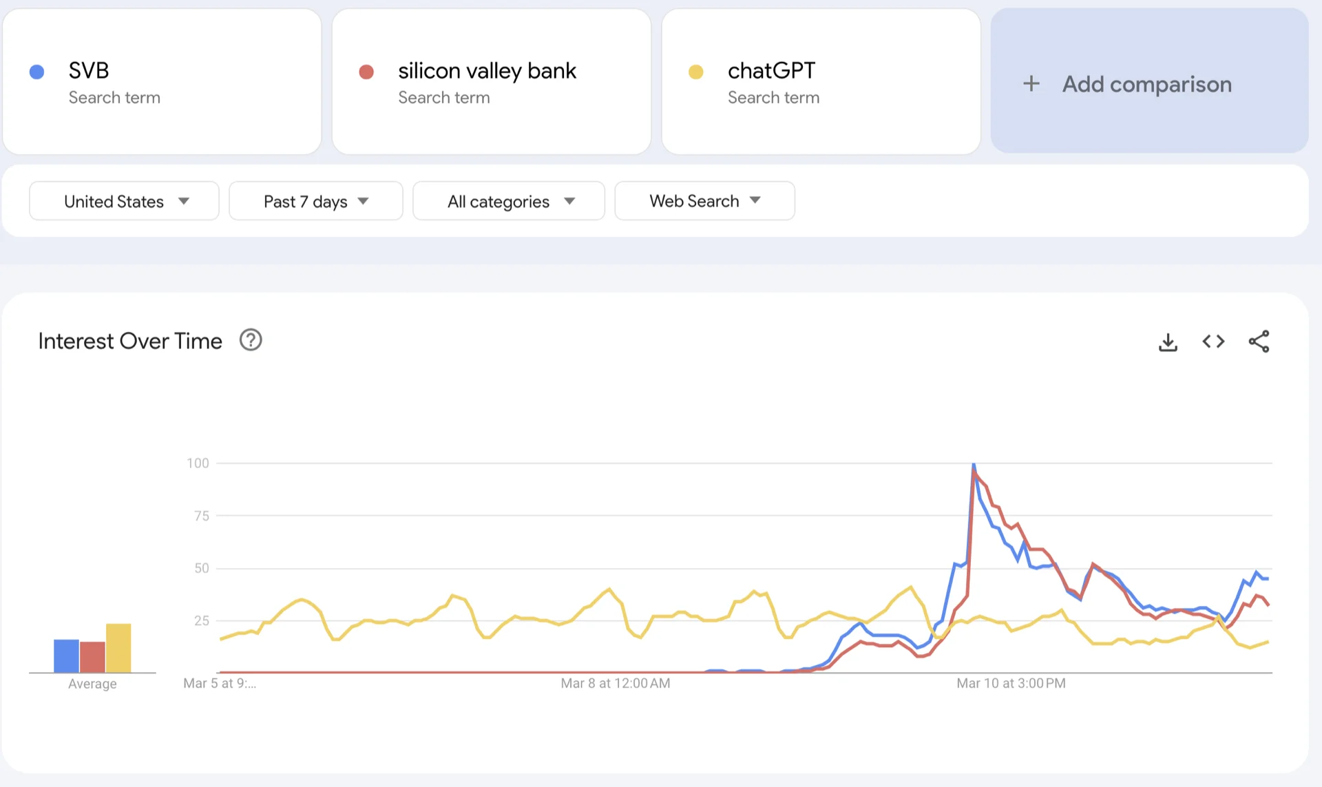 Why I am showing both chatGPT and SVB on the same chat, I want to understand the comparative interest between the two and I know that chatGPT is a very hot topic in the US.