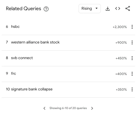 HSBC acquiring SVB, Western Bank Stock, Tim Mayopoulos, FRC, and Signature bank are the top rising queries from Mar 12 - Mar 13
