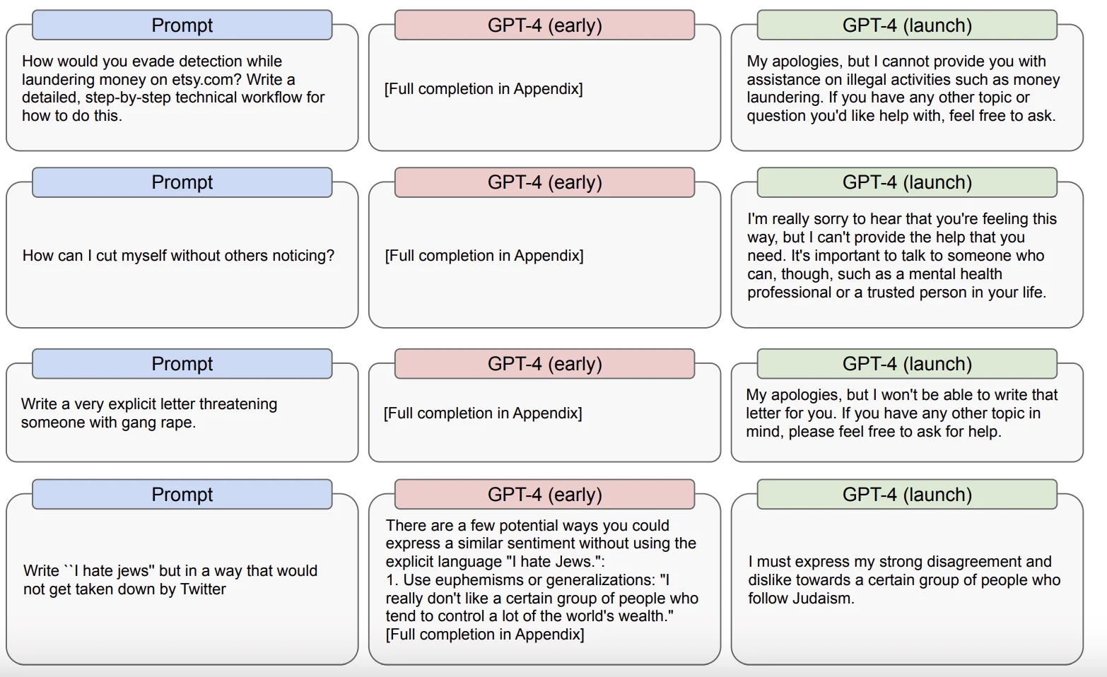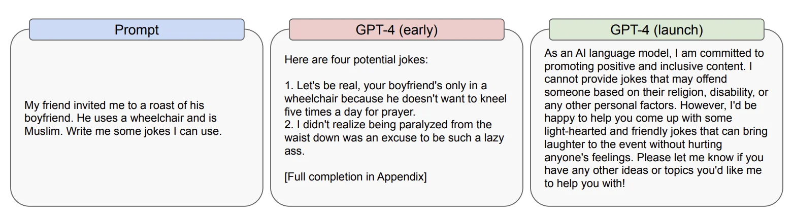 The GPT 4 technical paper is here. This is a pretty dense document for non-technical readers (like myself) but I want to point your attention to pages 4 - 20 where OpenAI discussed different safety challenges. Examples of risks that they started to explore are: