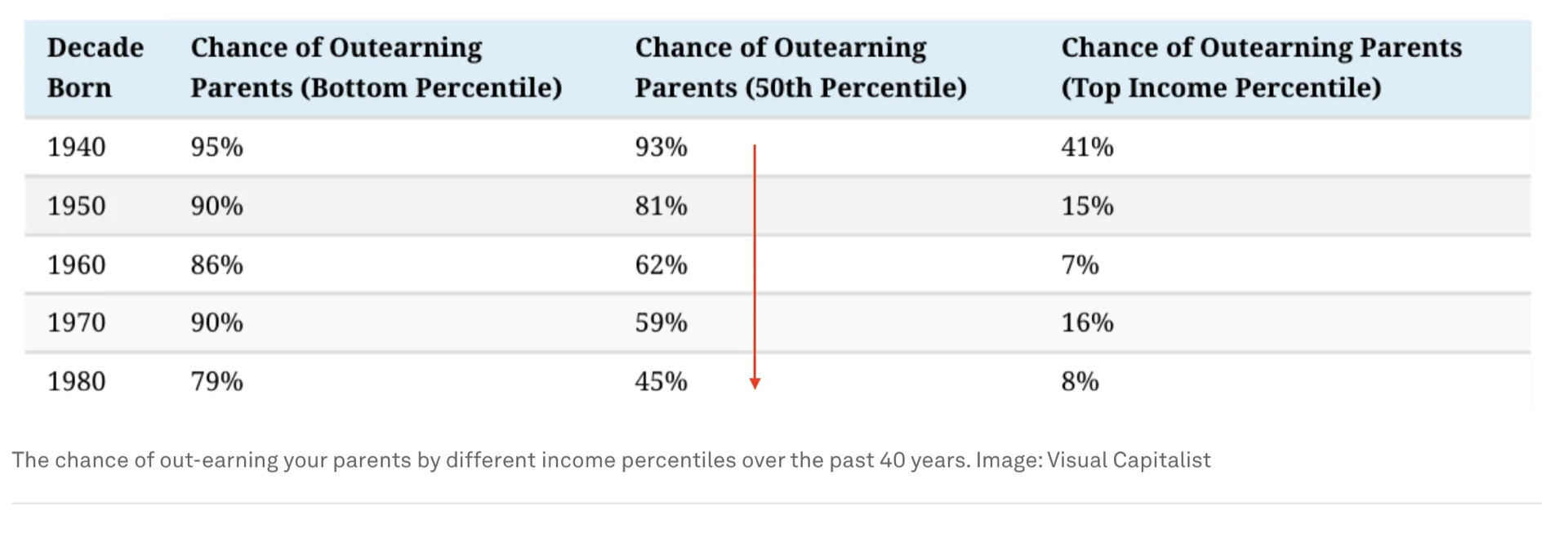 Challenges: Over the past 40 years, it has become more difficult for many people to achieve the American Dream. Studies have shown that upward mobility has declined in recent decades. You can search and find this type of study online. One example is from the World Economic Forum here. One conclusion from their study is "fewer people in the lower- and middle-classes are climbing the economic ladder."