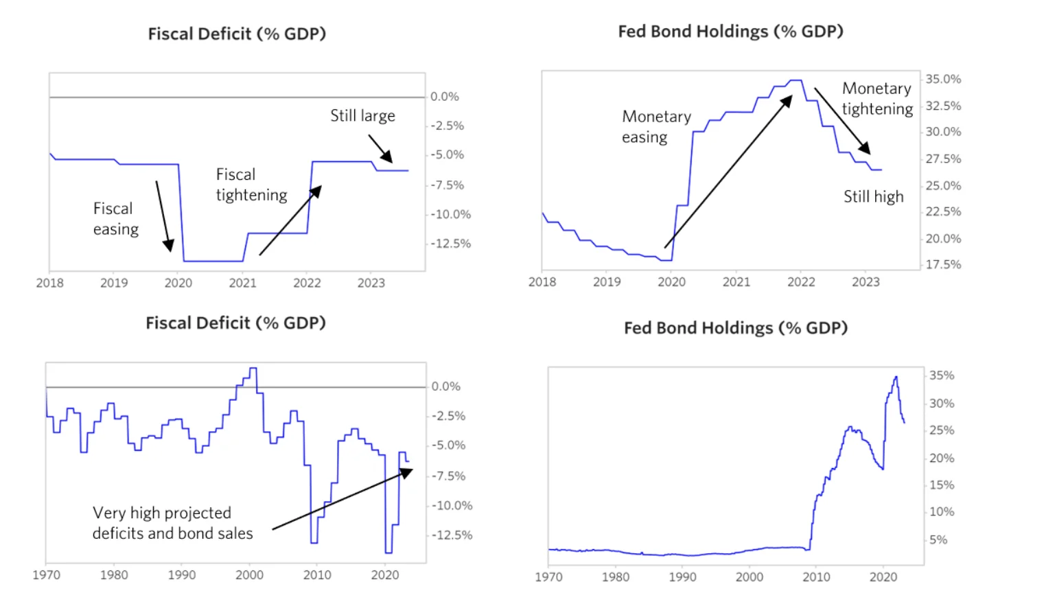 - Central Government Debt: With central governments' deficits predicted to grow, leading to a self-reinforcing debt spiral, what measures can be taken to mitigate this risk? How can governments and central banks navigate this complex situation without causing further economic disruption?
